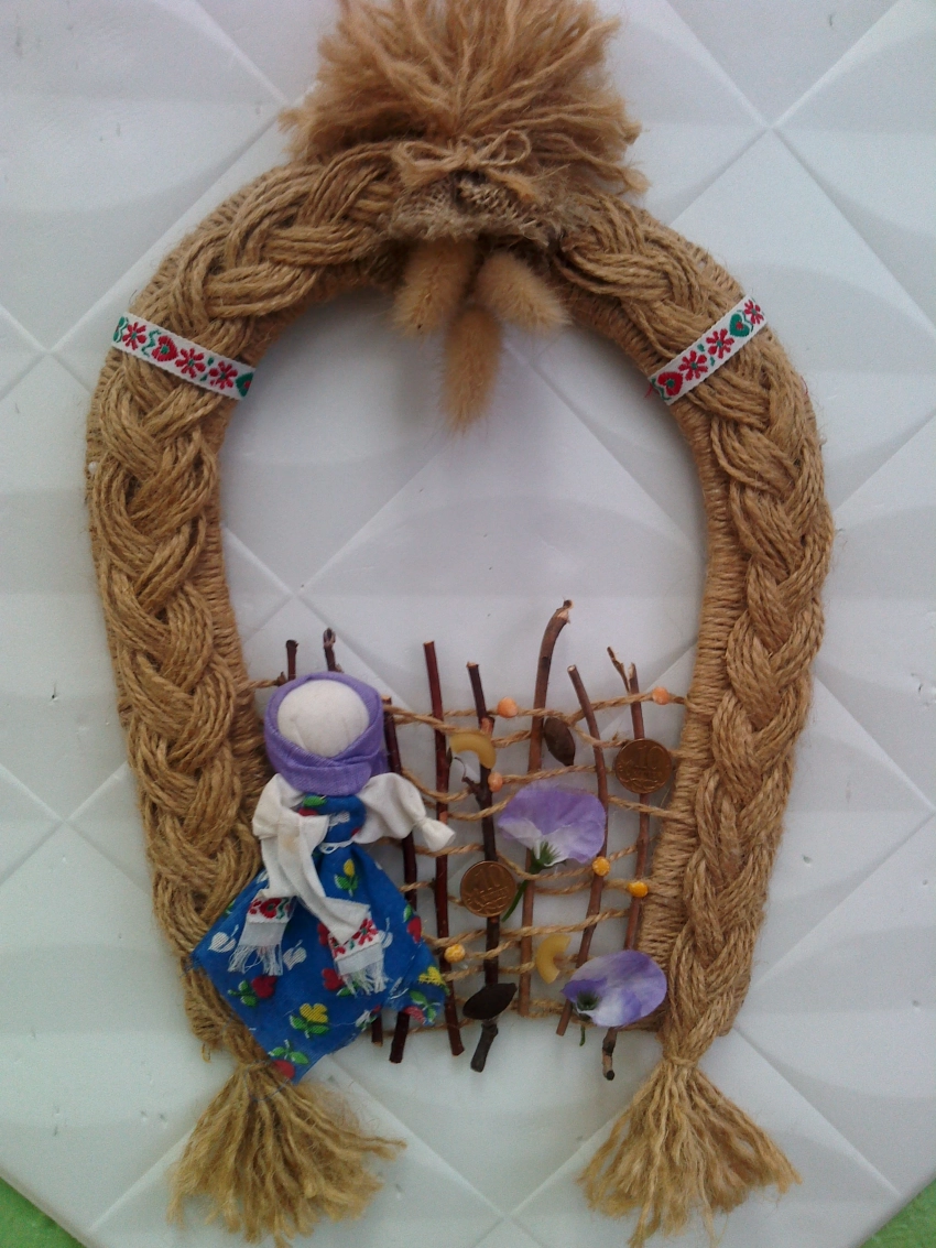 лапти (можно подвесить детские пинетки или сувенирные валеночки) – уют семейных отношений;
