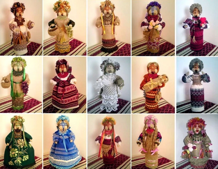 Чаще всего изготавливали кукол-мотанок. Такие обереги способны были ограждать от напастей жилище, помогали путникам по пути домой, способствовали вынашиванию ребенка и его защите. В основном, они выглядели, как перемотанные нитями куклы с каркасом из веточек в форме креста, с символическими элементами декора, в красочном убранстве (см. фото).