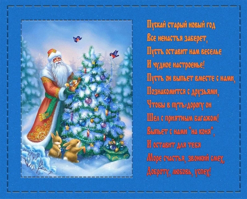 Празднование старого Нового года происходит в кругу семьи и наполнено разного рода обрядами. Допустим, год будет успешным, если в новогоднюю ночь группа мужчин «засеют горницу» пшеницей, ячменем и другими видами семян. На старый Новый год принято поздравлять друг друга, и желать исполнения самих заветных желаний. Уместно в этот день будут звучать и поздравления в стихотворной форме. Мы приготовили для вас целую подборку оригинальных новогодних поздравлений различных стилей.