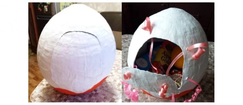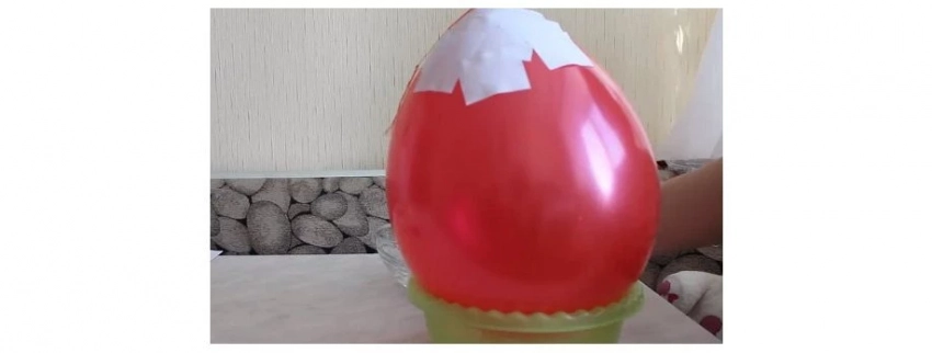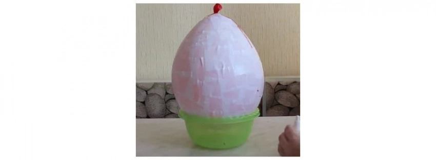 Дав заготовке хорошенько высохнуть, развязываем шар и, выпустив из него воздух, осторожно достаем его из яйца.
