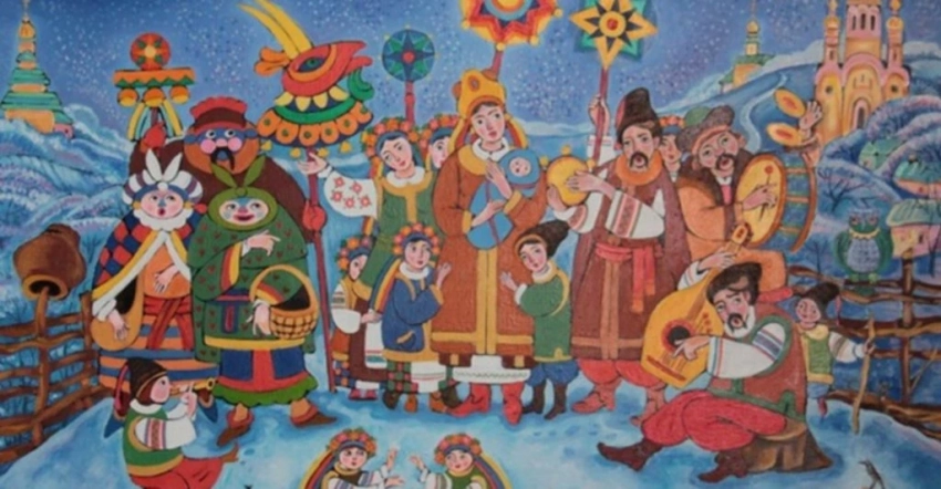 Собирается группа людей, переодетых в забавные костюмы (частыми персонажами являются ангел, медведь и коза), часто изготавливается символ Вифлеемской звезды. В колядках воспевают Иисуса Христа, извещают всем о его рождении, поздравляют хозяев дома, желают здоровья и процветания. Перед колядующими не принято закрывать дверь, их надо обязательно одарить деньгами или сладостями. Иногда устраивается целая мистерия, которая иллюстрирует рождение Иисуса – вертеп.Колядуют на Рождество (обряд прославления Христа), а на Васильев вечер щедрую (могут переодеваться в козу и бесов, юношу наряжают в девушку – Меланку).