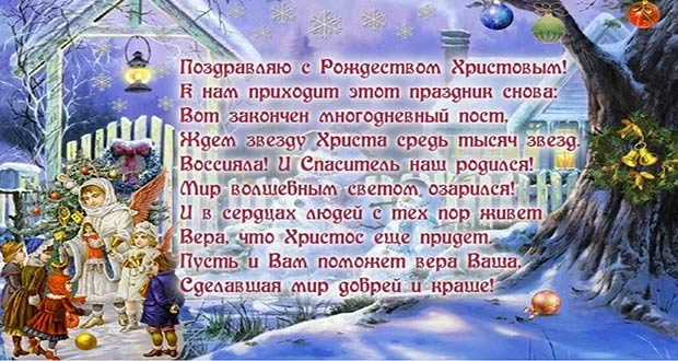 С Рождеством Христовым поздравляю, и желаю, чтобы тёмная сторона твоей жизни ушла навсегда с первыми лучами рождественского утра. Пусть вместе с ночью из жизни твоей уйдут все печали, проблемы и неудачи. Открой сердце для новой жизни и пусть огонёк надежды никогда не погаснет в твоей груди. С Рождеством!