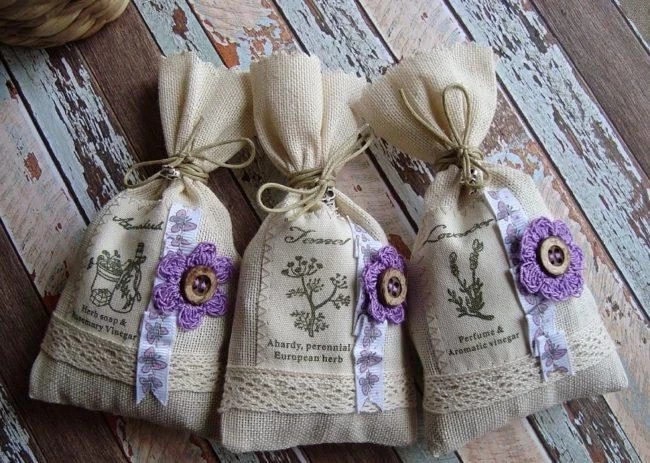 Наполнить саше для шкафа можно лавандой (можно купить в аптеке), которая будет отпугивать моль. Ароматический мешочек, который будет расположен на кухне, можно наполнить ароматными травами (лаванда, мята), пряностями (гвоздика, корица, ваниль) или кофейными зернами. В ванной из-за повышенной влажности сухие травы быстро отсыреют, поэтому наполнить саше лучше морской солью с эфирными маслами.