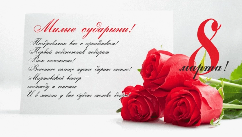 Поздравляю с Международным женским днём. От чистого сердца желаю вдохновлять всех нежностью и красотой, дарить родным и близким свои улыбки. Желаю быть успешной в делах и счастливой по жизни. Пускай в твоем доме поселится благополучие, богатство и любовь.