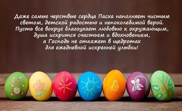 Пусть Бог услышит ваши молитвы о счастье и добре. Пусть все плохое уйдет в прошлое, а грехи останутся вашей тайной. Детям и взрослым только здоровья и благополучия. Желаем найти в себе силы простить друг другу обиды. С Великим днем, с теплом и нежностью, вошедшим в наши души и сердца!!! С Пасхой!!!