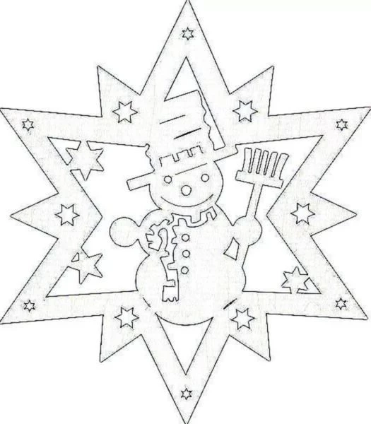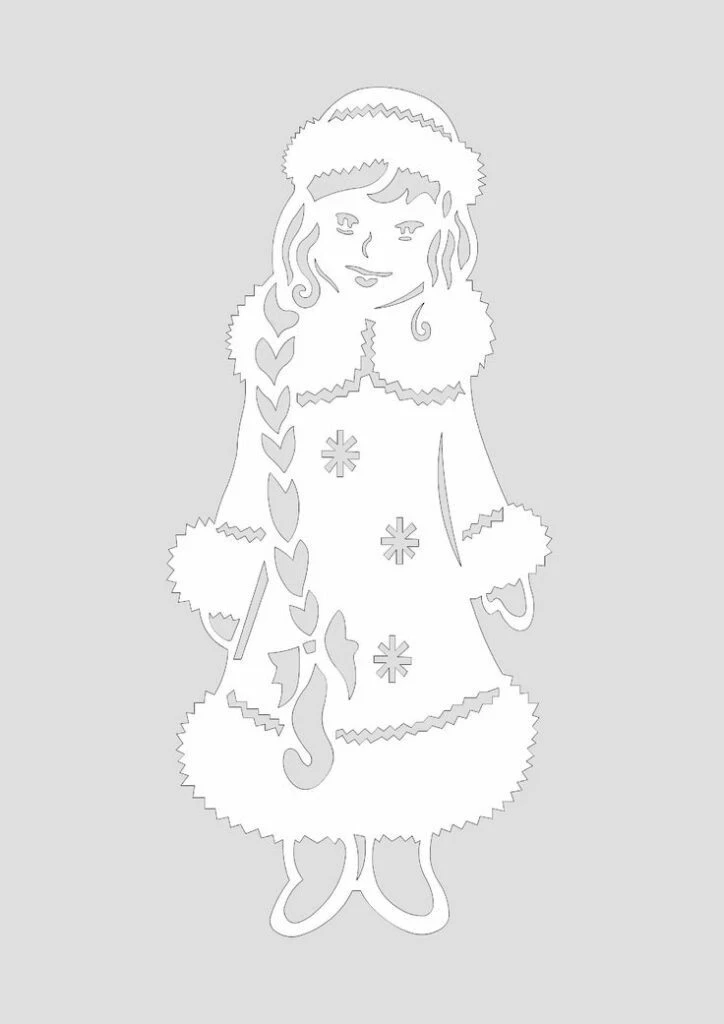 После символа года, второй главный новогодний персонаж – Дед Мороз или в некоторых вариациях – Санта Клаус. Он может быть сам, с мешком, с оленями или на коньках. Но дедушка не может быть без своей внучки Снегурочки и верного помощника Снеговика. Интересное решение – сделать много вытынанок одного стиля, но разного размера и украсить ими дом. Я обычно делаю и объемные как фонарики и плоские.