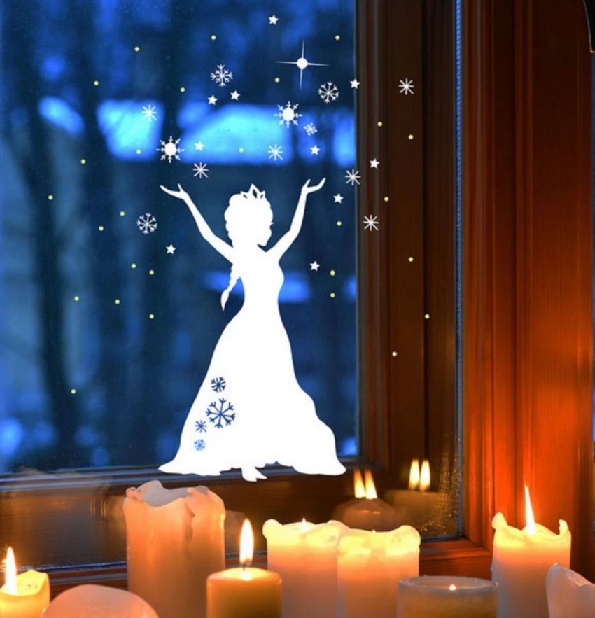 Сказочные герои остаются фаворитами на Новый год. Новогодние трафареты можно изготовить в оригинальном дизайне, изображающим героев мультфильма “Холодное сердце”, оленей, Снеговика Олафа и так далее. Такой Новый год точно запомнится как взрослым, так и детям. Кстати, маленькие члены семьи тоже могут принимать участие в изготовлении декора.