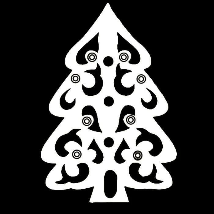 Трафареты с ёлкой для украшения окна могут быть самыми разнообразными. Подобрав понравившийся вариант, его можно распечатать на принтере, после чего вырезать ножницами. Если не имеется в наличии принтера, можно просто перерисовать его, пользуясь обычным карандашом.