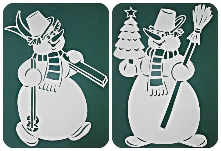 Каждая снежинка уникальна и не похожа на другую. Её по праву можно назвать произведением искусства. Вот почему шаблоны можно изготавливать по-разному. Особенно красиво смотрятся снежинки, прорисованные вместе со снеговиком.