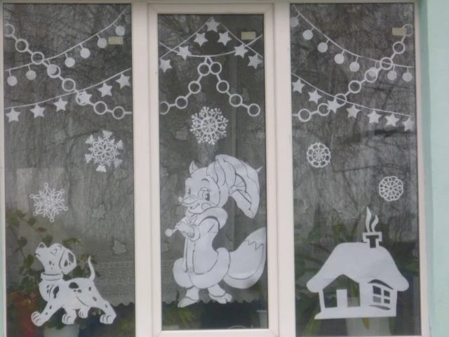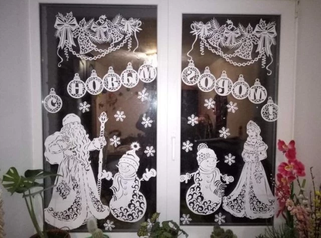 Как украсить окна на Новый Год 2020 своими руками шаблоны: домики, снежинки, снеговики