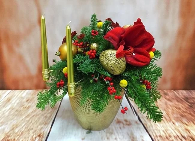 - Сделайте новогодний букет – отличную альтернативу елке.
