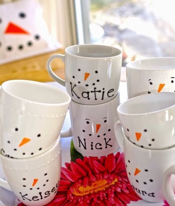 - Чашка, расписанная под праздничную тематику.