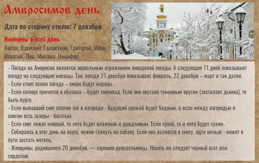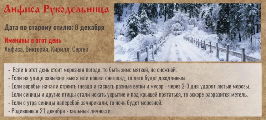 Народные приметы на декабрь 2021 года на каждый день