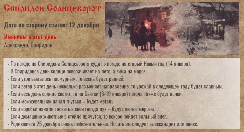 25 декабря — Спиридон Солнцеворот, католическое Рождество