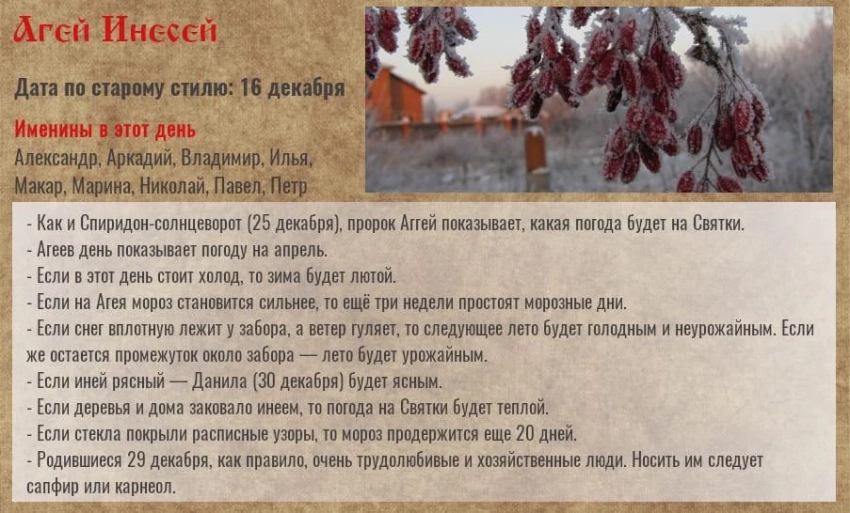 29 декабря — Агей Зимоуказчик