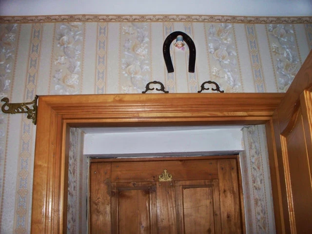 У славян присутствовало в жилище множество оберегов, которые защищали домочадцев от несчастий. Над входной дверью, например, вешали перевернутую подкову.