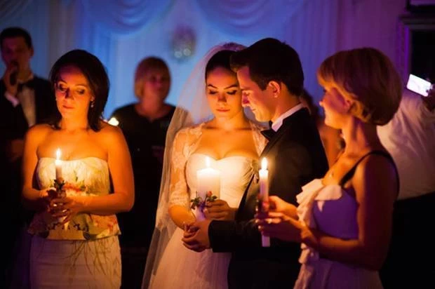 Для этого всем женатым и замужним раздают свечи, чтобы каждый мог передать частичку своего семейного очага и тепла молодоженам. Новобрачные задувают огни и загадывают желания в честь первого дня рождения семьи.