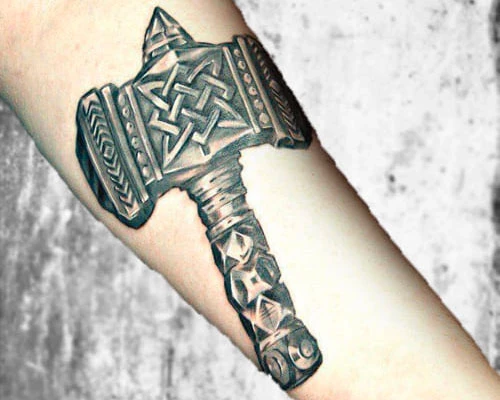 Этот символ поможет человеку эффективнее управлять своей жизнью, придаст решимости и уверенности. Также считается, что тату молот Сварога помогает завоевывать авторитет и успешнее усваивать новые знания.