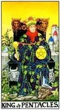 Карты Пентаклей, сочетаясь с самым сильным Арканом своей же масти – Королем, трактуются следующим образом: