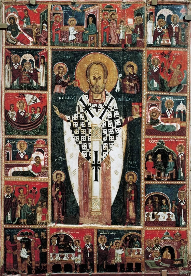 живый в Мирех, миром благоухал еси, и миро приснотекущее благодати Божия источаеши. Твоим шествием, пресвятый отче, море освятися, егда многочудесныя твоя мощи шествоваху во град Барский, от востока до запада хвалити имя Господне. О, преизящный и предивный чудотворче, скорый помощниче, теплый заступниче, пастырю предобрый, спасающий словесное стадо от всяких бед, тебе прославляем и тебе величаем, яко надежду всех христиан, источника чудес, защитителя верных, премудраго учителю, алчущих кормителю, плачущих веселие, нагих одеяние, болящих врача, по морю плавающих управителя, пленников свободителя, вдов и сирот питателя и заступника, целомудрия хранителя, младенцев кроткаго наказателя, старых укрепление, постников наставника, труждающихся упокоение, нищих и убогих изобильное богатство.