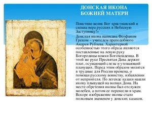 Донская икона — одна из старинных почитаемых на Руси образов. Традиционно молиться перед ней благословлялось воинам, защитникам Отечества, солдатам. Этот образ считался защитным для Руси, к нему прибегали в любых войнах или конфликтах. Тем не менее, это вовсе не означает, что обычные православные христиане не могут обратиться за помощью к Богородице перед Донской иконой.