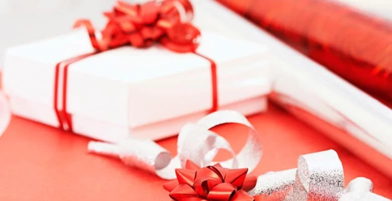 Подарок обязательно нужно упаковать в красивую бумагу, украсить бантом или просто перевязать ленточкой. Супруге можно преподнести букет из 7 цветков. Не стоит забывать и про открытку.