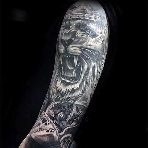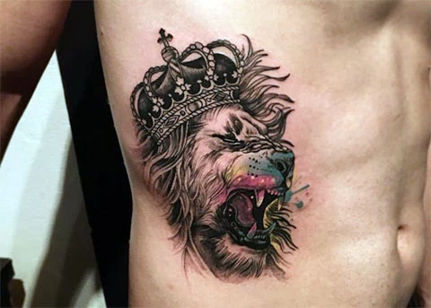 Лев с короной — мужская тату