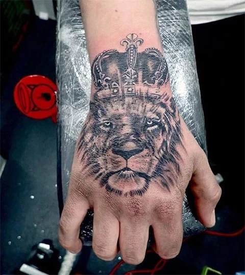 Тату лев с короной