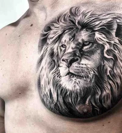 Тату льва на груди