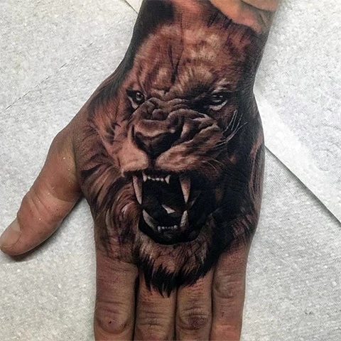 Тату лев — мужской вариант татуировки на руке