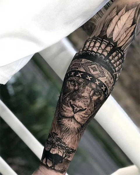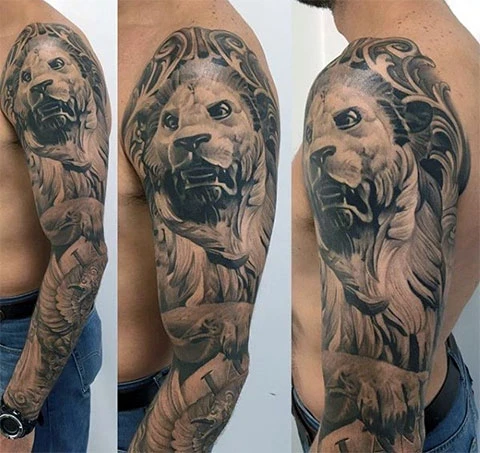 Тату рукав со львом для мужчин