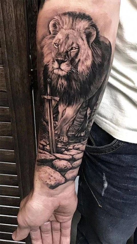Тату лев на руке для мужчин — фото