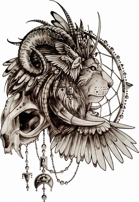 Эскиз для мужской татуировки со львом