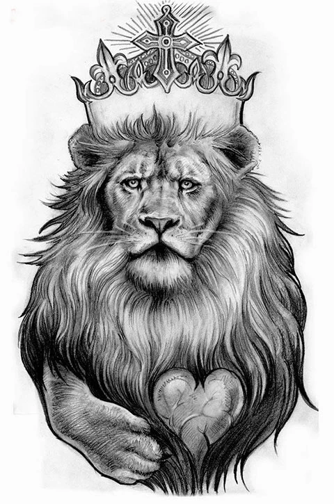 Эскиз льва с короной для мужчин