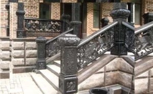 - Кованное. Здесь имеется в виду отделка металлическими элементами. Особенность такой отделки заключается в повышенной надежности и устойчивости. Металлические изделия необходимо подвергать дополнительной обработке от коррозийных образований и красить.