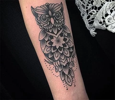 Мандала сова – это символ, свидетельствующий о мудрости, смекалке, эрудиции. В некоторых случаях сова может символизировать и смерть. Вообще, как отмечают специалисты, значение совы для каждого такое, какое он в эту тату вкладывает.
