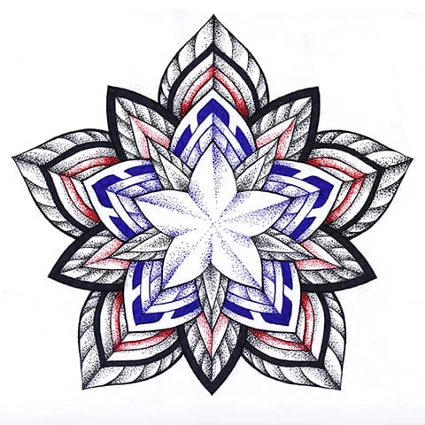 Этот тип татуировки выполнен из треугольников и кругов сформированных в изображение мандалы. В отличие от любых других геометрически татуировок, у этой есть центральная часть, которая привлечет ваше внимание. Центральная часть в виде шестигранной звезды сформирована из двух треугольников. Дизайн часто ассоциируется с троицей католиков. Он символизирует Отца, Сына и Святого Духа. Некоторые культуры также считают, что шестисторонняя звезда удерживает ключ к их цели в жизни.