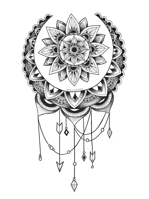 Оригинальной считается тату луна, выполненная в чисто белых цветах. Для каждой мандалы человек может самостоятельно подобрать стиль и технику нанесения. Однако прежде чем набить себе на тело такое тату, важно изучить его характеристику, осознать обозначение и толкование.