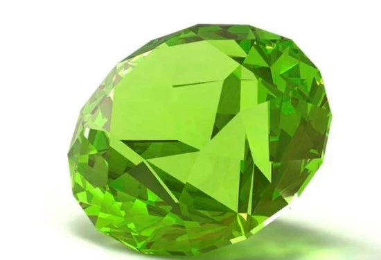 Минерал хризолит — прозрачный, иногда полупрозрачный (присутствует легкая дымка) зеленовато-желтый камень. Золотистый оттенок в нем присутствует всегда, насыщенность зеленого цвета варьируется в зависимости от химического состава, угла зрения, освещения и т. п. Это один из немногих камней, который «любит» искусственное освещение — в его лучах он больше всего похож на благородный изумруд.