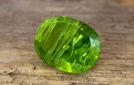 Оливин, в том числе зеленый, желтый и оливковый, имеет твердость 6,5–7 по Моосу, приобретает стеклянный блеск после полировки, отличается высоким коэффициентом преломления световых лучей — поэтому по отношению к нему часто используют бриллиантовую огранку. Несмотря на это, оливин хрупок и подвержен внутреннему напряжению, поэтому легко раскалывается.