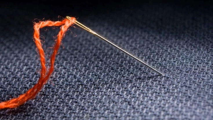 - Нитку обернуть вокруг иглы, чтобы не привлекать лишнее внимание.