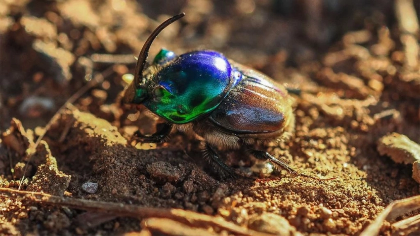 Жук скарабей – представляет собой членистоногое насекомое, имеющее жесткие крылья и усики, напоминающие пластинки. Функциональная особенность усиков – могут раскрываться как веер. Относится к санитарам песчаного грунта.