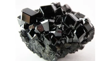 - Андрадит. Самоцветы характеризуются чёрной основой. Оттенки кристаллов могут быть жёлтые, зелёные, красные или бурые.