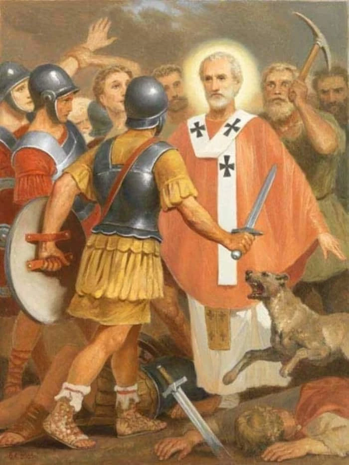 В 325 году святитель Николай был удостоен чести принять участие в 1 Вселенском соборе, где яростно обличил учение еретика Ария и в конце обличительной речи отхлестал лжеучителя по щекам. За рукоприкладство он был наказан и лишен принадлежности богослужебного одеяния священника – омофора, затем взят под стражу.