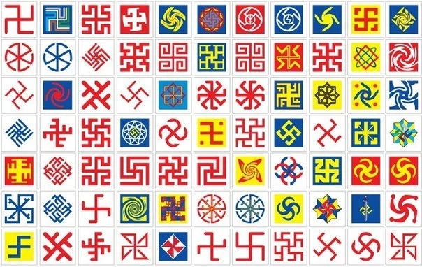 - солярные (или свастические) – являющиеся олицетворением солнца, вечно движущегося по небосклону, символизирующие огонь, круговорот времени и божественную силу;