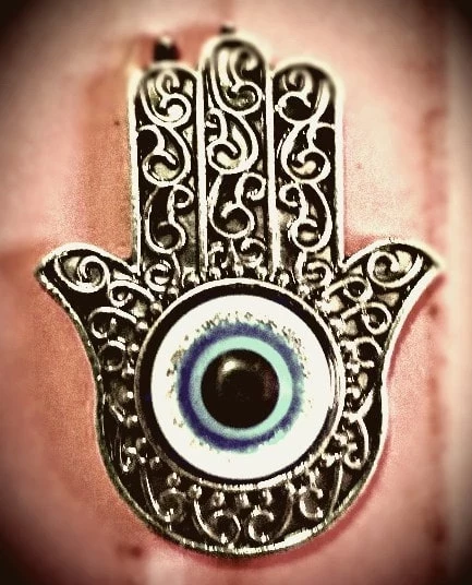 Очень часто символ руки украшает глаз. Этот глаз должен защищать своего обладателя от сглаза. Глаз располагается прямо над тремя вытянутыми пальцами. Амулет можно носить на руке, на шее в виде кулона. Считается, что эффект амулета усилится, если он будет прикреплен к красной нитке.