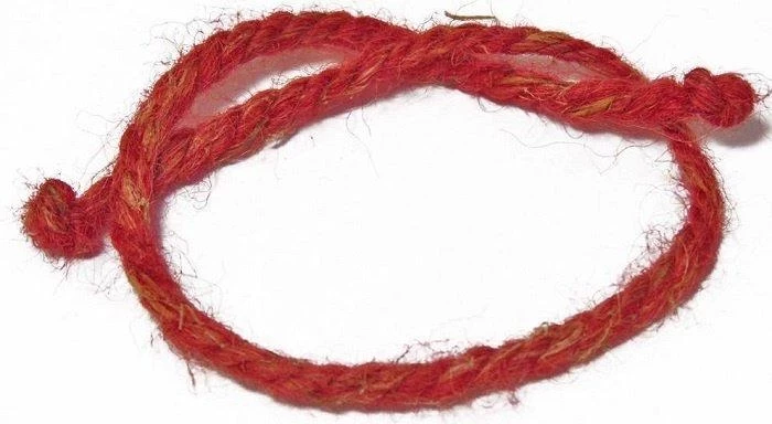 Нитку для обряда (из чистой шерсти, ярко-красного оттенка) должен приобрести отец. От клубка нужно отрезать кусок подходящей длины. Для этого понадобится специальный нож (керамический или костяной).