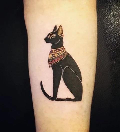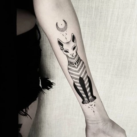 Изображение египетской кошки на запястье, руке или ноге – это символ богатства и успеха, мощнейший талисман и оберег для своего носителя. Бытует мнение, что подобная татуировка (изображение сфинкса) помогает хорошо продвинуться по карьерной лестнице.