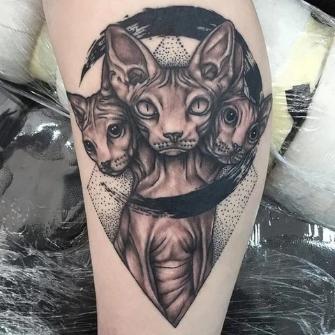 Грациозность и женственность кошки в основном символизируют женское начало, поэтому нательные изображения с этим животным нередко предлагаются тату-мастерами для девушек в салонах. Наколотый рисунок сфинкса, например, на запястье, обозначает изворотливость, загадочность, игривость её обладательницы, символизирует сексуальность и раскрепощённость.