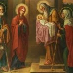 Услыши убовоздыхания наша и донеси ко престолу Владычню, и деже ты предстоиши всмы, яко много может пред Богом молитва праведника. Да не до конца забудет нас Господь, но призрит с высоты небесныя на скорбь рабов Своих и плод чрева на полезное дарует. Воистину, Богидете хощет, тако сотвори Господь Аврааму и Сарре, Захарии и Елисавете, Иоакиму и Анне, с ним же моли. Тако да сотворит Господь Бог и нам по милости своей и неизреченному человеколюбию. Буди имя Господнее благословенно от ныне и до века. Аминь.
